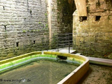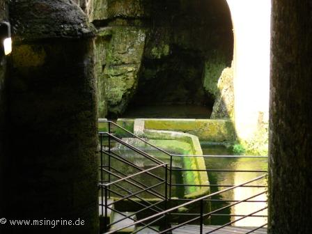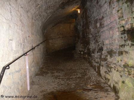 Noch heute steht das Wasser knöchelhoch auf dem gesamten Bereich, mit Laufbohlen kann der Tourist allerdings trockenen Fußes die Gänge passieren.