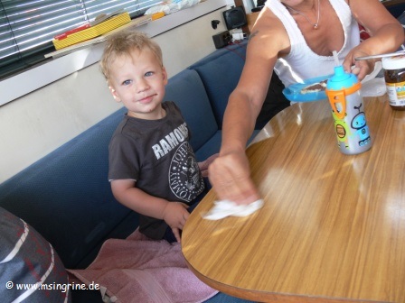 Essen für Mirko, aber er schlief fast dabei ein.