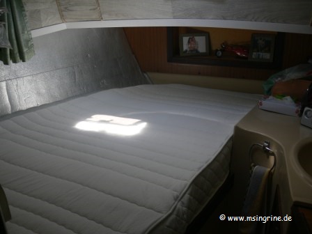 Hier eine Aufnahme von der Vorschiffkabine, die Sonne erhellte durch die