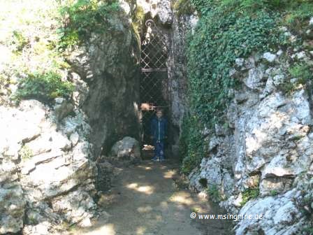 Hier steht er vor dem Eingang zur Grotte, der aber stets verschlossen