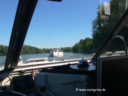 Ein Mietboot von Canalous fuhr kurz nach uns aus dem Hafen von Auxonne