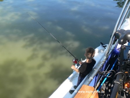 Am Liegeplatz wurden dann zum ersten Mal die Angeln ausgepackt uns in
