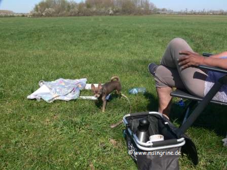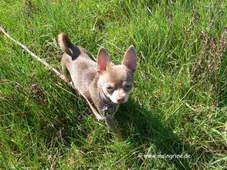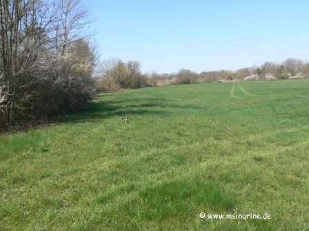 Ui, eine tolle Wiese. Da kann ich aber wie wild rumrennen.