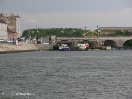 Doch so weit kamen wir leider nicht, die Ecl. 14 Vereux war in Panne geschaltet. Oberhalb lag ein Kahn vor der Schleuseneinfahrt, der war wohl einen Moment vor uns an der Schleuse angekommen. Es blieb uns dann nichts anderes übrig, als um 11:15 am Abweiser unterhalb der Schleuse anzulegen. VnF war über Funk nicht zu erreichen, das Telefon an der Schleuse wurde auch nicht bedient, da wollte bestimmt jemand eine ruhige Mittagspause haben.