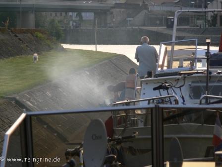 Die Ecl. 18 von Heuilley war bei Ankunft in Betrieb, ein Schiff vor uns in Bergfahrt, wir mussten dadurch etwas länger Warten, bis die Schleuse wieder unten war.