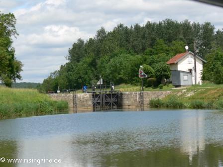 Auf der Höhe der Ferme de Montrichier passte es dann und ich zog langsam vorbei. Die Entfernung zur nächsten Schleuse war so abgepasst, dass wir ausreichend früh vor dem Schleichfahrer dort sind, damit wir diese vor ihm passieren konnten.