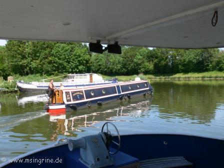 Es war nicht ganz so einfach das lange Narrowboot vom Steg frei zubekommen.