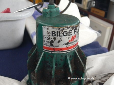 unsere Hauptbilgenpumpe auf, die nicht immer anspringen wollte.