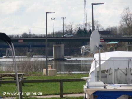 an Treibholz angespült worden, das sich auch an den Brückenpfeilern