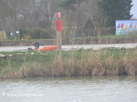Ein einzelner Kämpfer vom Kanuclub versuchte verzweifelt die verkeilten