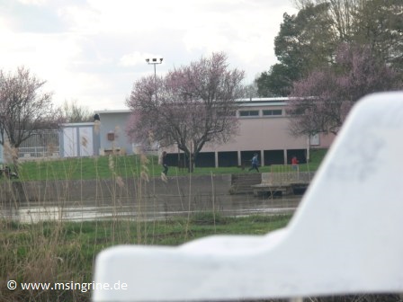 Am Schwimmbad waren die ersten Bäume mit zarten Blüten versehen, die