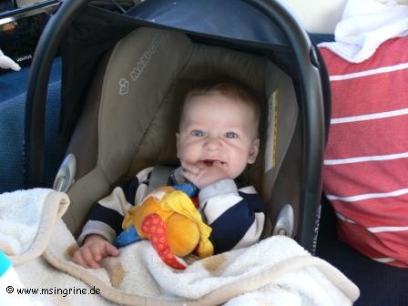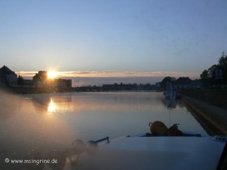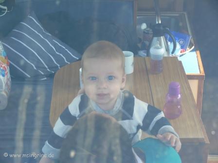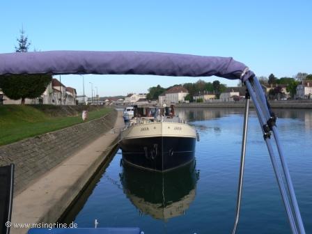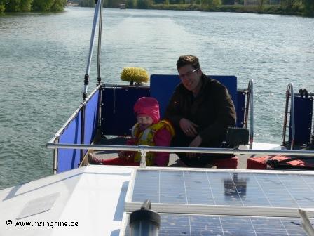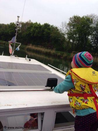 Tag 3 Sa 19.4.2014 Sonnenschein an einem Regentag Wie üblich war um 7°° die Nacht zu Ende, Schicksal mit Kleinkindern an Bord, aber wir stehen eigentlich immer so früh auf. Belohnung gab es durch einen wunderschönen Sonnenaufgang bei klarem Himmel. Leichter Dunst lag auf dem Wasser und nur in der Ferne konnte man ein paar Wolken sehen. Mal sehen wie es wird, für heute war eigentlich graues Wetter wie am Vortag angemeldet. Wie gewohnt war der Uferbereich am Anleger sehr gepflegt hergerichtet, die Wiese war wohl frisch geschnitten, zumindest roch alles nach frischem Gras. So konnte man es aushalten und ich hatte dort eine gute halbe Stunde zum Schauen für mich alleine. Allmählich kam der Rest der Meute zum Vorschein und es gab dann auch noch richtiges Frühstück. ![]() Wie im Vorfeld eingeplant ging es dann für den weiblichen Teil der Crew noch einmal in den Intermarché, natürlich nur für das nötigste. . . Mira probierte direkt den Buggy aus, den wir extra für diese Fälle an Bord haben. In Arc-lès-Gray lag die " Freitag der Dreizehnte" im Port Saint Martin, die junge Familie hatte wie im Jahr zuvor bei uns am Steg überwintert und ist nun wieder hier unten vor Ort. Wir vermuten, dass man sich nebenher um die Liegeplätze für die durchreisenden Boote kümmert. Mira war wieder zu ihrem Papa auf das Deck gekrabbelt und hatte Spaß dabei, die Tiere auf den Wiesen und Feldern und am Flussufer zu beobachten. Oben an Deck wurden die Fische gezählt, oder was auch immer, zumindest gab es keine Langeweile. Wir hatten ja auch mächtig Glück mit dem Wetter. Mira hatte voll ihren Spaß und wollte absolut nicht nach unten unter Deck. Sie hielt sich, wie angewiesen an der Reling fest und schaute den Fahnen im Fahrtwind zu. Oben am Mast drehte sich dann ja auch immer die Windmühle von der Wetterstation und der Windrichtungsanzeiger wechselte ständig, toll. . . . Der extra gekaufte neue Softball war natürlich die Attraktion auf der Wiese und Papa Ingo hatte kaum eine echte Chance. Mira war begeistert von so einem großen Schiff, das direkt vor uns anhielt. Vorbei ging es am Campingplatz von Lamarche-sur-Saône, der mit einigen Wohnmobilen recht gut besucht war. |