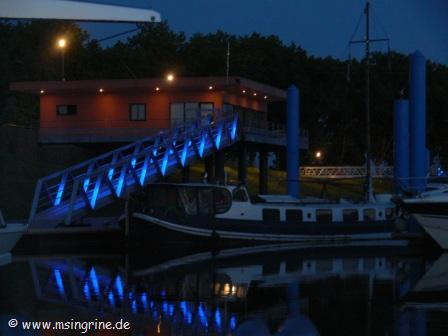 Die ganzen Steganlagen im Hafen waren mit blauen Lampen beleuchtet,