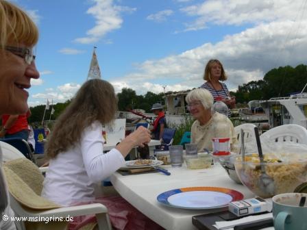 Die Anlieger im Hafen treffen sich mehrfach im Jahr wie hier zu einem spontanen Picknick  und Grillen auf dem Damm, jeder bringt etwas mit, man hat sehr viel Spaß und lernt so seine Nachbarn im Hafen kennen, Bekanntschaften und Freundschaften entstehen.