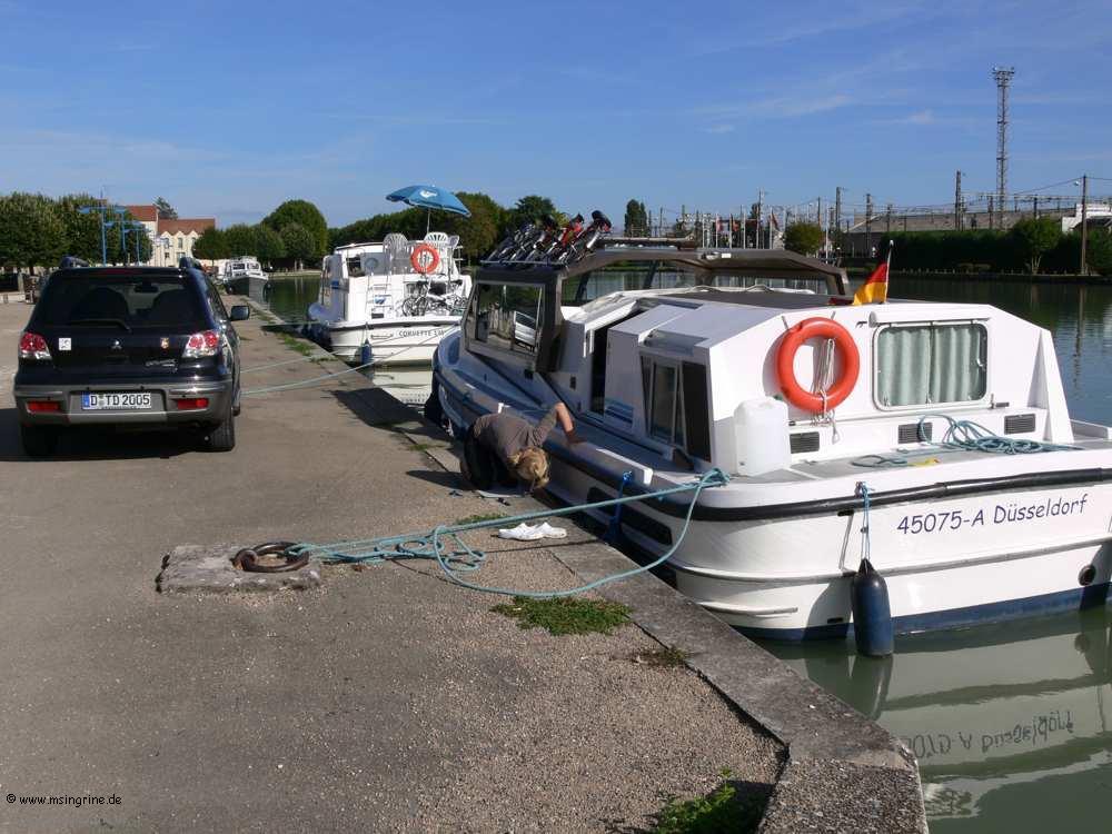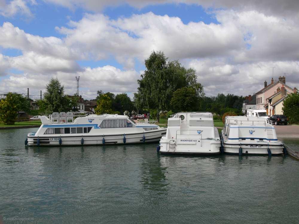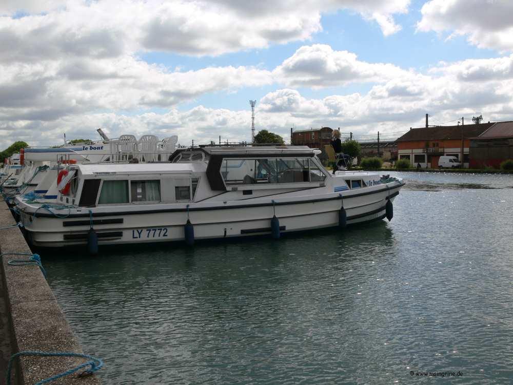 Im August war es dann endlich soweit. Bei bestem Wetter ging es nach Frankreich ins Burgund und dort nach Migennes , wo das Boot gerade überholt worden war. Unser Weg zum Hotel in Auxerre führte uns dort vorbei, und so machten wir noch einen kleinen Zwischenstopp an der dort wunderschön gelegenen Basis von LeBoat. Kaum dort angekommen konnten wir das Einslippen des Bootes miterleben. Mit frischem Unterwasseranstrich und neuem Anti-Fouling sah das Boot für uns aus wie neu.