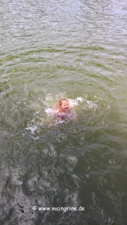 Mira konnte es kaum abwarten und sprang sofort ins Wasser.