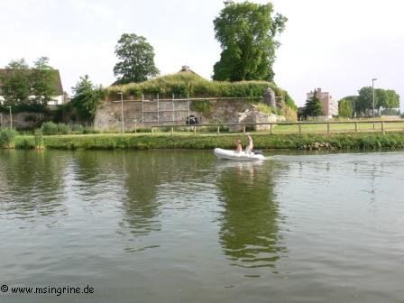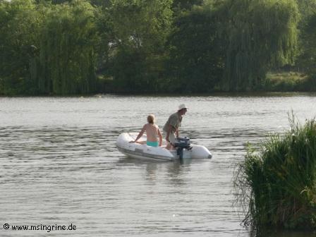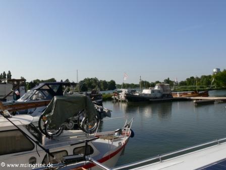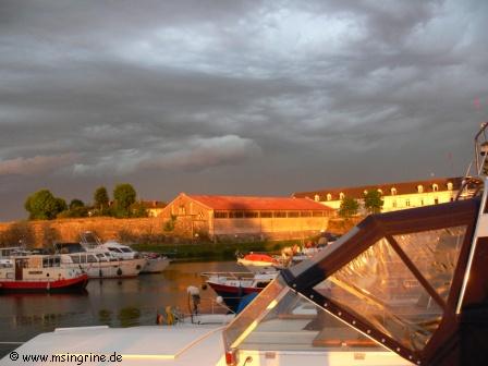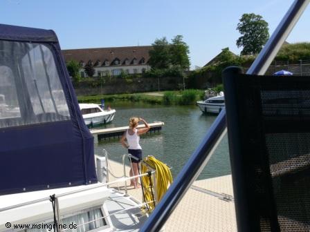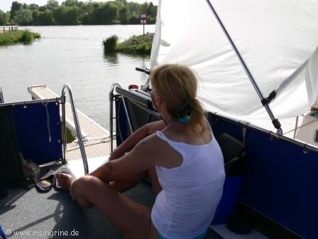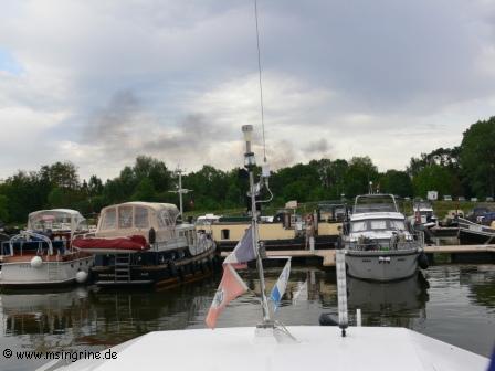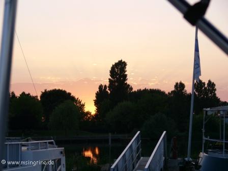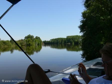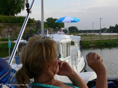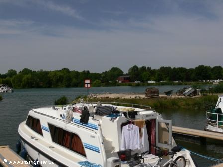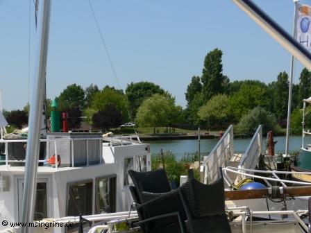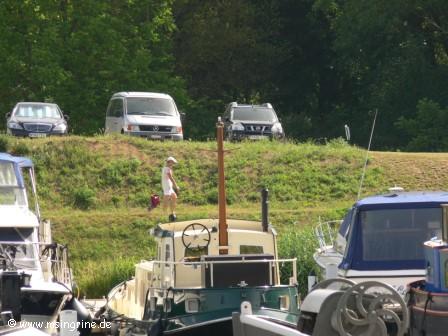 Tag 1 Sa 7.6.2014 Endlich Urlaub ! ! ! Die letzten Wochen in Düsseldorf waren geprägt über die Ungewissheit vom Ausgang der anstehenden Operation vom kleinen Mirko, die immerhin dann auch noch 2 x verschoben worden ist. Daher waren wir diesmal richtig Urlaubsreif, zumal die OP nun in der Woche nach dem Ende des Urlaubes erfolgen sollte. So sind wir dann auch etwas mit gemischten Gefühlen morgens zum Schiff aufgebrochen. Dafür wurden wir vor Ort vom Sonnenschein verwöhnt. Das MB vor uns war kurz vor der Rückgabe, konnte man deutlich erkennen . . . Am Nachmittag hatte ich dann einen Mietbootfahrer gesichtet, der auffallende Ähnlichkeit mit meinem Schwager Peter hatte. Nur der Bart war etwas zu üppig. Wir hatten den ganzen Tag an Deck die Sonne genossen, nachmittags waren Helga und Carol mit den Mietbooten beschäftigt, und unserer Überlegungen zum Ablauf an den nächsten Tagen brachte keinen Erfolg. Morgen ist auch noch ein Tag. Im Hafen kehrte dann langsam mehr Ruhe ein, einige MB-Fahrer waren an Land zum Essen gegangen, andere feuerten den Grill an. Das war dann auch unsere Maßnahme, da wir für eine volle Mahlzeit einfach keinen Hunger hatten. Und mit dem Sonnenuntergang um 21:29 ging an diesem Abend auch unser erster Urlaubstag langsam dem Ende entgegen. Tag 2 So 8.6.2014 Wann geht´s los ? Das Urlaubswetter war auch am zweiten Tag herrlich. Morgens gab es den Kaffee auf dem Nildeck, dann gingen die Beratungen für ein mögliches Reiseziel der nächsten Tage weiter. Am Freitag Abend wollte meine Schwester Marion mit meiner Mutter für eine Woche aufs Boot kommen, also konnte die Tour auch nicht so weit sein. Dazu kam noch die Überlegung, wo wir mit unseren Gästen hinfahren wollten. Immer diese Entscheidungen. Auf der anderen Seite der Saône war das Freibad gut besucht, außerhalb waren auch einige Leute, die es sich im Schatten der Bäume gemütlich gemacht hatten. Dann konnte Helga ab 16°° wieder MB´s einfangen. Sie bekam dann doch tatsächlich einmal eine Tafel Schokolade als Trinkgeld. Die musste sie natürlich abliefern. Im Freibad waren immer mehr Leute zu sehen, der Tag war ja auch recht warm geworden. Später kam dann noch eine kleine Schwanenfamilie bei uns vorbei, um sich etwas Brot abzuholen. Tag 3 Mo 9.6.2014 Wann geht´s los ? Morgen vielleicht ?? Und auch heute ging es wieder mit einem Sonnentag weiter. Mit dem Kaffeepott neben dem Stuhl konnten wir die Vorbeifahrt der Baychimo beobachten. Nach 15°° wurden die Ferngläser im Hafen gezückt. Ein Blödboot fuhr ausserhalb der Tonnenstrecke am gegenüberliegenden Ufer auf die Sandbank zu und die Crew wunderte sich noch über die Schwimmer im Wasser. Die rote Linie wäre der korrekte Kurs gewesen. Zum Glück ist den Schwimmern aber nichts passiert. Auf dem Fluss waren am Nachmittag die Wasserskifahrer unterwegs. Sie fuhren draußen am Hafen vorbei und ich traute meinen Augen nicht, war da einer als Huhn verkleidet ?? Auf der Rückfahrt konnte man das nicht mehr genau erkennen, aber irgendwie war der Skifahrer verkleidet. Bis nach 18°° konnte man es in der brütenden Sonne kaum aushalten, es sei denn wie hier unter dem Sonnenschutz. Eigentlich ist Sonne schön, aber irgendwie waren es konstant 5° - 10° zu warm. Zum Glück war die Luft aber trocken, sodass nicht mit einem Abendgewitter zu rechnen war. Es waren schon ein größere Stücke dabei, Roy fischte diese alle aus dem Wasser. Mit dem Schnellboot ging es dann zurück in den Hafen , . . . Hinter uns war am Tag ein Mietboot eingetroffen, ein Vater mit seinen Kindern auf Urlaubstour, zwei Söhne und eine Tochter waren mit an Bord. Die Kinder lebten unter dem Jahr in Indien, der Vater kaum aus Karlsruhe. Am späten Abend zog sich der Himmel etwas zu, es waren aber nur vorbeiziehende Wolken, es blieb trocken und von einem Gewitter war nichts zu hören. Tag 4 Di 10.6.2014 Badetag auf der Saône Heute waren wir dann doch losgefahren, hoch zu einem Schattenplatz oben an der Kurve von der Saône. Zum Nachmittag sind wir zurück in den Hafen, rechtzeitig um die Ankunft von Judith und H mit ihrer Lux zu erleben. Roy und Carol waren zum Ponton gekommen, um den beiden beim Anlegen behilflich zu sein. Wenig später lag ihr Schiff an seinem angestammten Platz am Ponton. Die Sonne stand auf der anderen Seite der Saône tief am Himmel und das ganze Umfeld war in den prächtigsten Farbschattierungen getaucht. So ging dann auch dieser Tag zu Ende. Aber wir haben ja noch 12 Tage Urlaub vor uns. Tag 5 Mi 11.6.2014 Badetag Teil II Aber auch heute war es wieder so heiß, das wir uns wieder auf Richtung Badeplatz im Schatten machten. Wir waren dann auch ziemlich lange draußen an unserem Liegeplatz geblieben. Erst nach 17°° machten wir uns auf den Rückweg in den Hafen. Das Mietboot von Vorgestern mit den Kindern aus Karlsruhe / Indien war auf der Rückfahrt wieder bei uns im Hafen. Vincent kam sich den Köcher wieder ausleihen und wir hatten wieder etwas zu erzählen. Sein Bruder Louis kam sich bei uns Gewürze leihen, da seine Schwester Liv etwas für den Papa kochen wollte. Später saßen wir dann mit allen zusammen bei uns an Bord, zuerst bei einem Kartenspiel, das ich immer negativ gewonnen hatte, danach kam Dieter, der Vater dazu und wir hatten einen netten Abend zusammen. Tag 6 Do 12.6.2014 Badetag Teil III Heute wurde die Ingrine geputzt und aufgeräumt, ab Morgen haben wir dann Gäste an Bord. Am Vormittag wurden die Vorräte aufgefüllt, ausreichend Wasser gebunkert und dann wieder hoch in den Liegestuhl. dann erneut Leinen los, ab zum Baden. Vor 16°° ging es dann wieder zurück in den Hafen. Dies war heute auch unser letzter Tag dort, um mit Carol die Boote einzufangen, Morgen geht es am Nachmittag zum Flughafen, um die Gäste abzuholen. Tag 7 Fr 13.6.2014 Ab zum Flughafen Am Vormittag war Markt in Auxonne, den wir wie immer besucht hatten, wenn wir hier vor Ort sind. Dann wurde die Einkaufsliste abgearbeitet und später dann alles im Boot verstaut. Um 18°°