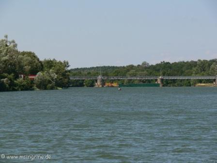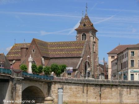 Zuerst ging es hoch auf die Brücke und dort gab es einen Blick auf den Hafen und die Doubs, die etwa 400 Meter von hier entfernt in die Saône mündet. Der Ausflug und Rundgang ist im Reisepreis enthalten.