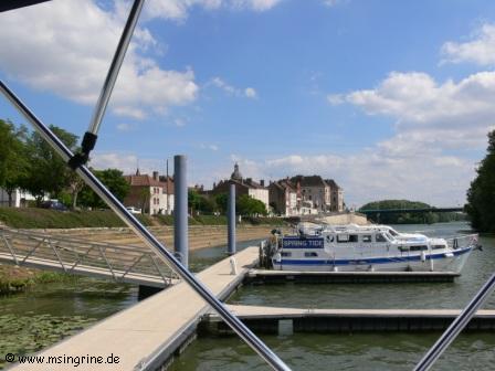 Unterhalb der Schleuse von Seurre lag das Ziel unserer heutigen ersten Etappe, der Hafen von Seurre. Da wir sehr früh hier anlegten, waren hier fast alle Plätze frei und wir hatten die große Auswahl.