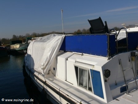 Die Plane war noch auf dem Boot belassen worden, zum erleichterten
