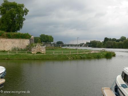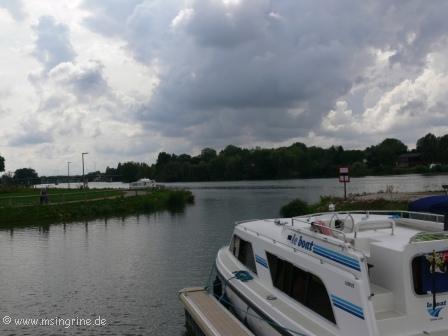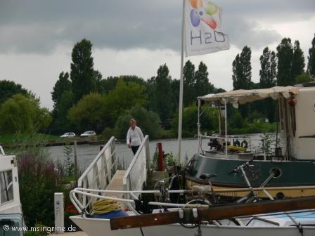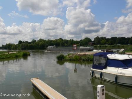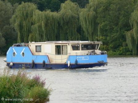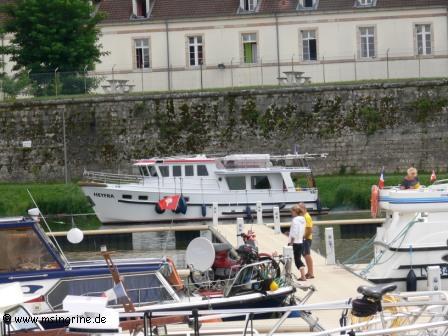 Zum "normalen" Wochenende ging es am 2. und 3. August nach Auxonne, diverse Einkäufe waren angesagt und wir wollten das Boot für unseren Urlaub im August etwas vorbereiten. Der Vormittag verlief wie üblich in der Stadt, am Nachmittag gab es dann wieder für Helga etwas zu tun, sie half Roy mit den Booten. Zuerst wollten wir noch etwas hinausfahren, haben es dann aber gelassen. Dafür konnten wir den Booten und Schiffen zusehen, wie hier die Melinda, die aus dem Marne-Kanal Richtung Macon unterwegs war. Helga machte ihre "Raucherrunde", oder eigentlich Abgewöhnungsrunde. Sie hat den 2. Versuch gestartet, um sich das Rauchen abzugewöhnen, diesmal mit Hilfe in Form einer elektronischen Zigarette. Sie ist sehr unruhig und um sich zu beruhigen macht sie längere Spaziergänge durch die Stadt. Am Sonntag war das Wetter wieder wesentlich besser und wir konnten von Deck aus einige exotische Boote beobachten, wie hier die Le Chouette Epervier, naja, was hat das Ding mit einer Eule gemeinsam ?? |