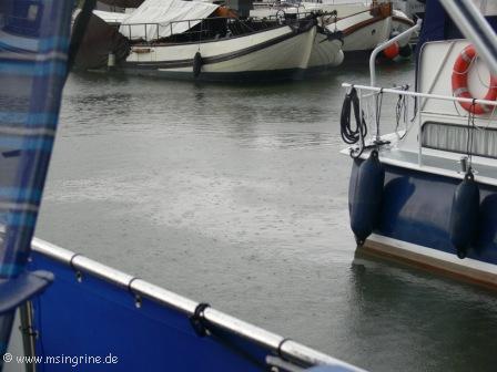 Das Wetter war am Nachmittag sehr durchwachsen, teilweise zogen sehr bedrohliche Wolken über uns hinweg, aber zumindest blieb es trocken. Das ursprünglich vorgesehene Grillen zum Abendessen wird wohl heute ausfallen, irgendwie war es doch etwas zu ungemütlich draussen. Und wie befürchtet fing es kurz vor 18°° an zu Regnen, aber zum Glück nur ein paar Tröpfchen. Also kam das Schwein in die Pfanne anstatt auf den Grill. Die Feldspath ist eines von drei baugleichen Transportschiffe und hat Wohnteil und Führerhaus im Vorschiff untergebracht. Sie verkehren zwischen der Mosel und Macon und sind für den Transport von Mineralien vorgesehen. Hier ist das Schiff auf dem Weg zum Atellier Fluvial, wo es wenige Tage später im Trockendock lag. |